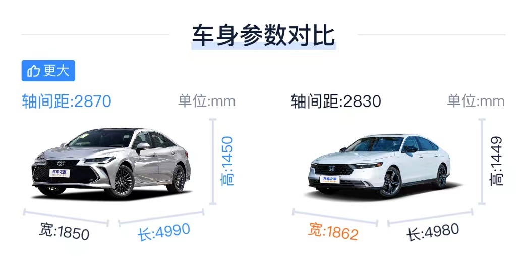 In terms of models, we chose the two configurations that are relatively close to the end point price after the current two-car discount, namely FAW Toyota 2024, the new Asian Dragon, and the dual-engine 2.0L deluxe version, with a guide price of 216,800 yuan. With GAC Honda 2023, Accord New Energy (parameter) 2.0L e: PHEV Smart Edition, the guide price is 225,800 yuan, and the end point price of the two cars is currently around 16-170,000 yuan. From the price point of view, the same is a 2.0L hybrid model, and the price of the new Asian Dragon second top version is nearly 10,000 yuan lower than the Accord entry version. And in terms of body size, Accord body size 4980 * 1862 * 1449mm, wheelbase 2830mm. The body size of the new Asian Dragon is 4990 * 1850 * 1450mm, and the wheelbase is 2870mm, which has reached the quasi-C standard, which is "half a rank" higher than the Accord. If you pursue cost performance and leapfrog body size at the same time, then the Asian Dragon has actually won this contest.